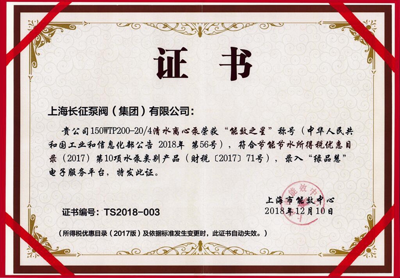 上海長征泵閥(集團)有限公司引進了先進數控機床、加工中心、大型立車、臥式鏜床、國家B等級水泵廠家測試中心、國內一流離心泵生產設備。以下是公司部份資質,點擊可放大查看。