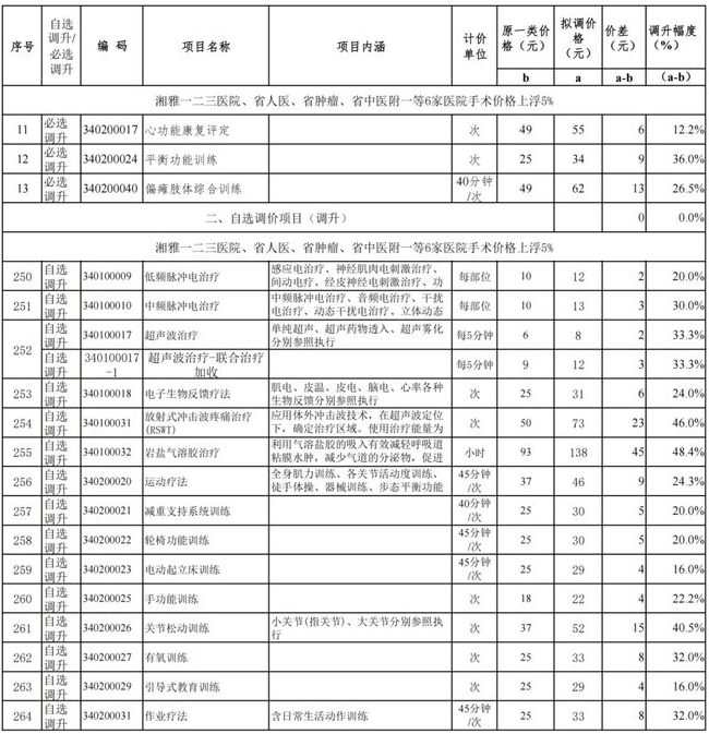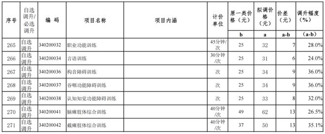 涉及康復科的類目也不少,心功能康復評定、平衡功能訓練、偏癱肢體綜合訓練都為必選調升項目。康復科自選調升也有很多,調升項目大多都是高度依賴人工。